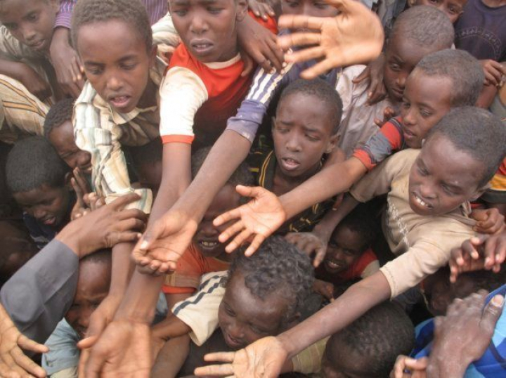 Niños del campo de refugiados de Dadaab, en Somalia, en busca de ayuda.