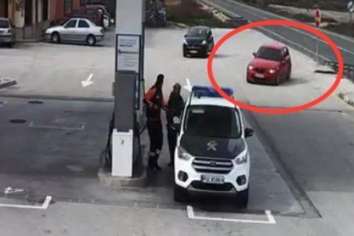 Todo sucedió a las 11:30, cuando los guardias civiles detuvieron su vehículo para repostar. En ese momento, tal y como captan las imágenes de la cámara de seguridad de la gasolinera, un BMW rojo se aproxima a toda velocidad por la carretera nacional cuando, de improvisto, gira hacia la gasolinera a toda velocidad.