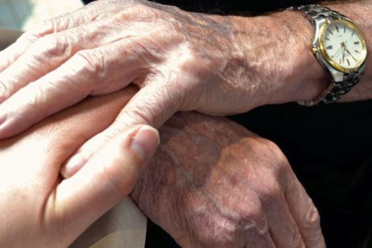 Two elderly hands holding onto one hand of a younger adult.Getty Images/iStockphoto