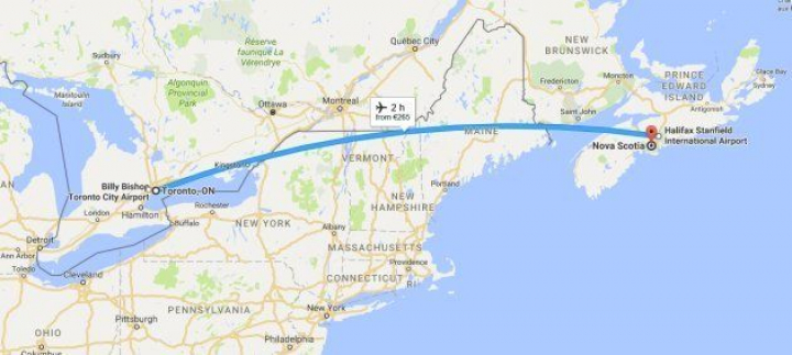 El problema es que su destino no era precisamente lo que él se imaginaba. Su vuelo no era para Sidney, Australia, sino para Sidney, Nueva Escocia, en Canadá.