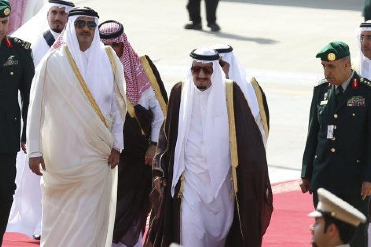 El Rey saudí Salman bin Abdulaziz con el emir de Qatar Tamim bin Hamad al-Thani, en el año 2015.REUTERS
