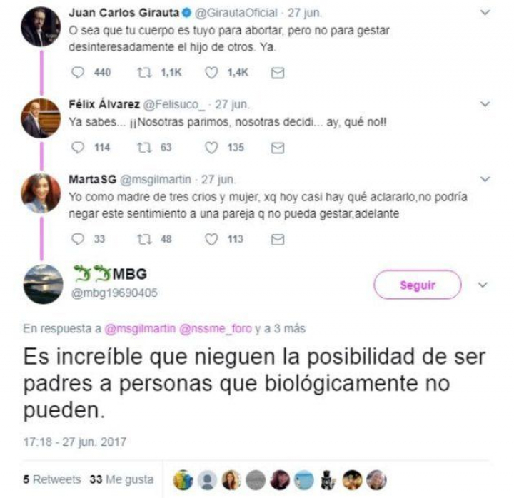 El tuit de Girauta es toda una declaración de intenciones que resume a la perfección de qué va todo este asunto: de hombres poderosos blancos que deciden sobre el cuerpo de las mujeres pobres racializadas. Analizando los casos de aquellos países donde la gestación altruista ya es legal podemos comprobar que sólo sirve para abrir la puerta al mercado de mujeres en otros países del mundo. En lugares como Ucrania, California o Reino Unido, los compradores no encuentran donantes y recurren al comercio internacional. En el caso del Reino Unido la maternidad subrogada altruista es legal desde 1985 y curiosamente es el país con mayor índice europeo de gestaciones contratadas en el extranjero. Otra de las "ventajas" de la legalización altruista es que puedes acudir al mercado reproductivo internacional con la seguridad de que cuando vuelvas a España podrás registrar sin problema a ese menor ya que la práctica está permitida. Conclusión: legalizar el altruismo en los países ricos favorece el mercado en los países pobres.