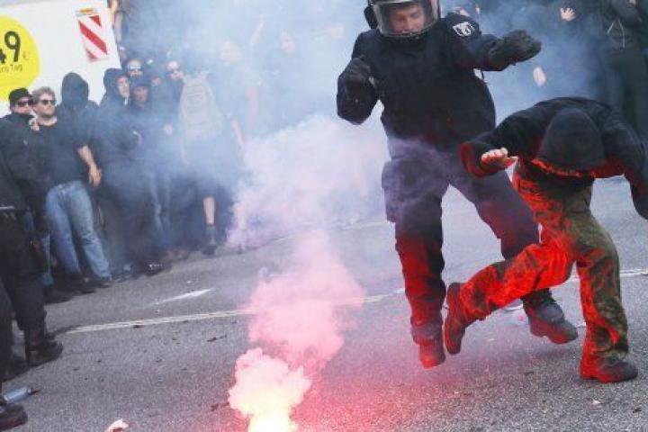 La marcha llevaba por lema 'Bienvenida al infierno' -'Welcome tu hell', en inglés- y había sido organizada por diversos colectivos, entre ellos el movimiento 'Rote Flora' -'Flora Roja'-, agrupados en torno a una casa ocupada cercana al centro de congresos donde se celebrará la cumbre.