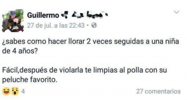 Denuncian a un hombre por un comentario "pederasta, machista y violento" en Facebook