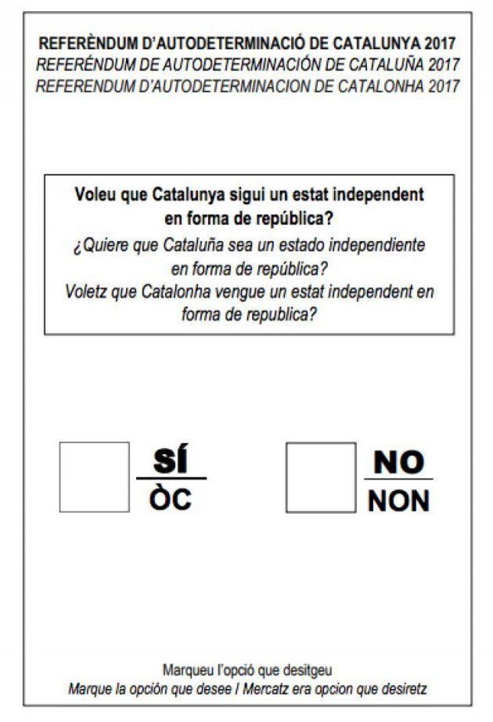 El decreto de normas complementarias del referéndum del 1 de octubre ya muestra la papeleta de la consulta. Viene en catalán, castellano y aranés, el tercer idioma oficial de Cataluña.
