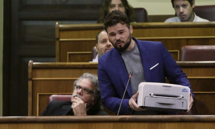 Rufián saca una impresora en el Congreso para defender el referéndum independentista