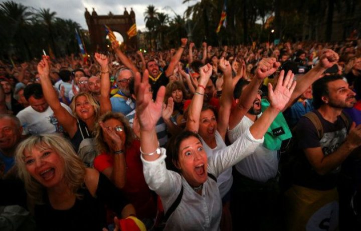 Allí, el fotógrafo de Reuters Iván Alvarado ha captado en dos fotos de forma certera los sentimientos de los congregados. Euforia con las primeras palabras del presidente de la Generalitat. Y decepción al escuchar, pocos segundos después, que los efectos de la independencia quedaban suspendidos. Dos fotos que ya se han hecho virales y que son el resumen perfecto de la jornada: