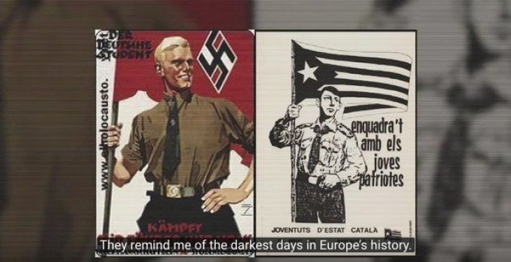 El vídeo llega incluso a comparar las políticas promovidas por la Generalitat desde hace años con la actuación de los nazis en Europa. "Me recuerdan a los días más oscuros de Europa. Han estado durante años difundiendo odio", asegura la protagonista del vídeo.