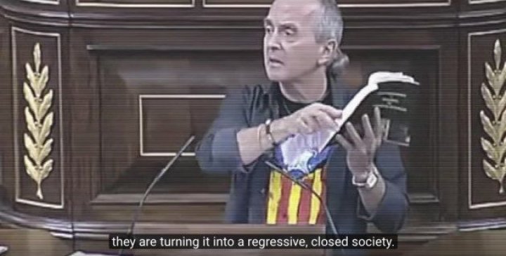 El spot llega incluso a confundir al abogado y sindicalista vasco Sabino Cuadra como si se tratara de un político independentista catalán, por el mero hecho de llevar una camiseta con una estelada. Cuadra fue diputado por Navarra entre 2011 y 2015. Se presentó como cabeza de lista por la coalición electoral de la izquierda abertzale Amaiur, antecesora de EH Bildu. En las imágenes se puede ver a Cuadra rompiendo un ejemplar de la Constitución en el estrado del Congreso en septiembre de 2015.