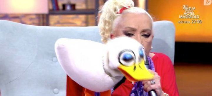 Para demostrar su plena salud, Mari Carmen, de 74 años, ha ido acompañada de sus muñecos —Doña Rogelia y Nico— y ha deleitado a la audiencia con su distinguido humor.