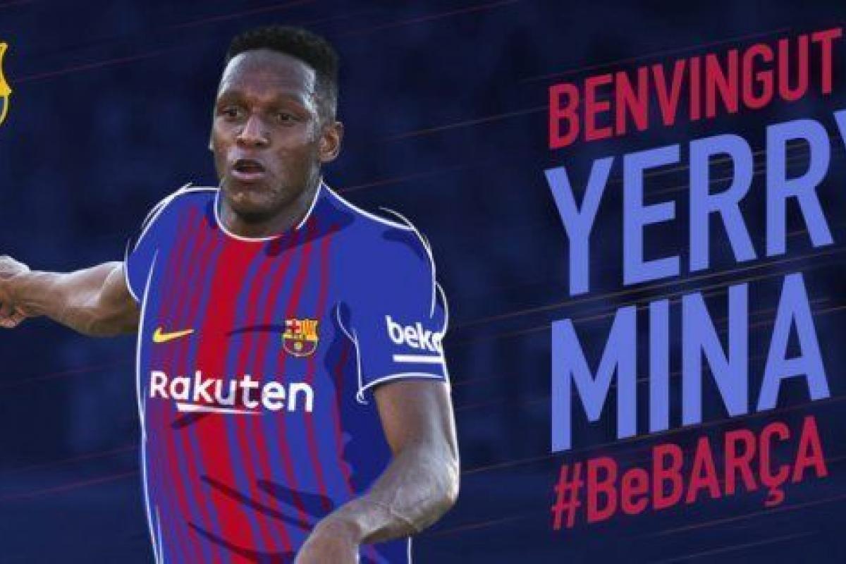 El jugador colombiano Yerry Mina jugará en el Barcelona lo que resta de temporada y cinco campañas más, hasta el 30 de junio de 2023, tras llegar el club blaugrana a un acuerdo con el Palmeiras brasileño para el traspaso del central por una cantidad de 11,8 millones de euros.