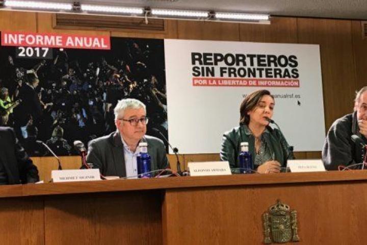 "Los últimos tres meses de 2017 figuran ya entre los más negros de la historia democrática en lo que a la libertad de prensa en Cataluña se refiere". Así de contundente se ha mostrado el presidente de Reporteros sin Fronteras (RSF), Alfonso Armada, en la presentación, esta mañana, del informe anual de la ONG, un repaso sombrío a la realidad de los informadores en todo el mundo.
