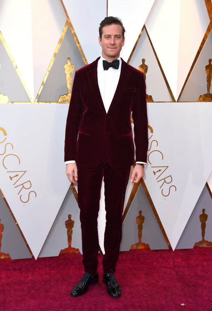 Si su compañero eligió el blanco, Hammer optó por el terciopelo rojo y acertó. El actor fue uno de los más aplaudidos por crítica y público y abandonó por una noche los chándales a los que nos tiene acostumbrados en su cuenta de Instagram por este diseño de Giorgio Armani.