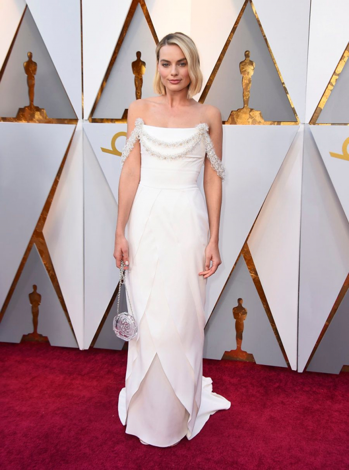 No hay alfombra roja que se le resista a Margot Robbie, y la de los Oscar no iba a ser menos. La actriz, nominada por su interpretación en Yo, Tonya optó por un Chanel Alta Costura muy parecido a otro que había lucido Penélope Cruz en 2015 durante una presentación de Ma Ma.