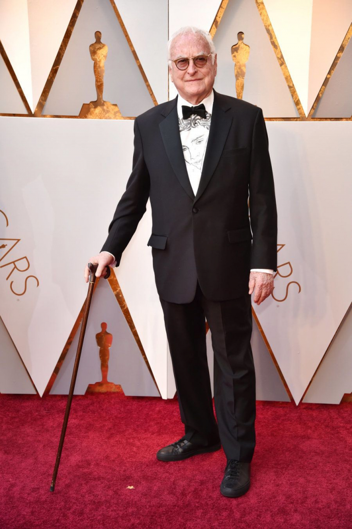 A sus casi noventa años el ganador del Oscar al Mejor Guión Adaptado por Call me by your name optó por uno de las prendas más comentadas de la noche. Ivory vistió una camisa blanca con la cara de Timothée Chalamet dibujada sobre ella. Toda una carta de amor a la película y a su protagonista.
