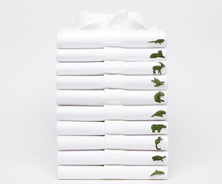 La campaña de Lacoste está realizada junto con la Unión Internacional para la Conservación de la Naturaleza (IUCN), y fue lanzada en el sitio web de la firma francesa después del desfile. Las playeras prácticamente se agotaron horas después de salir a la venta.