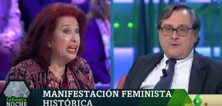 Entre los tertulianos estaba Lidia Falcón, histórica militante feminista y fundadora, en 1977, de la Organización Feminista Revolucionaria, que luego pasaría a ser el Partido Feminista de España.