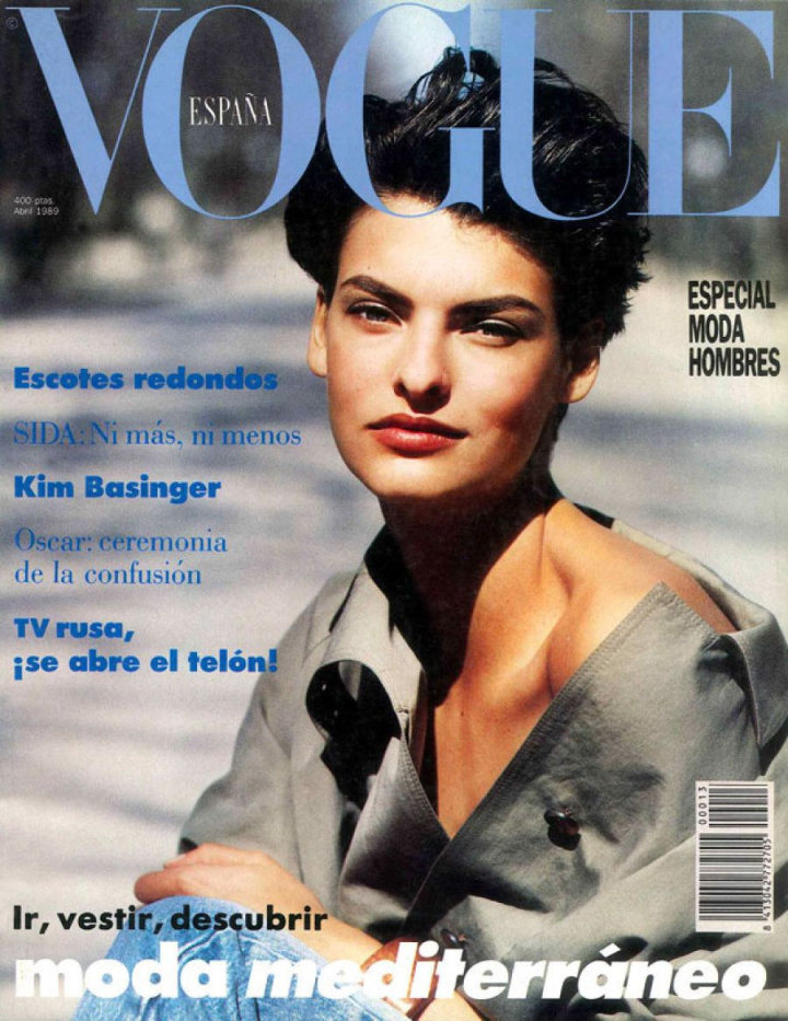 Un año después de su estreno la revista elegía a otra de las grandes tops de la época para protagonizar el número de abril de 1989. Una fotografía en exteriores en la que todo el protagonismo lo tiene Linda Evangelista, que con su magnetismo consigue atrapar a la cámara. Fue la primera portada de la modelo, a la que volvimos a ver en Vogue España en agosto de 1992