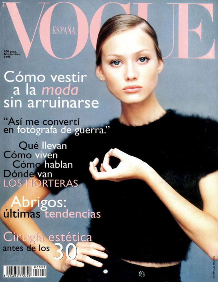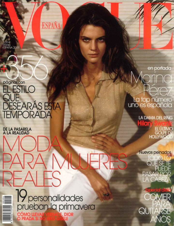 La modelo madrileña ocupó esta portada cuando comenzaba a convertirse en una estrella en las pasarelas internacionales. No hubo desfile que se le resistiese: Prada, el Balenciaga de Nicolas Ghesquiére o Dries Van Noten, entre otros muchos. A día de hoy Marina Pérez sigue subiéndose a la pasarela y protagonizando editoriales, el último en el número de celebración de los treinta años de Vogue.
