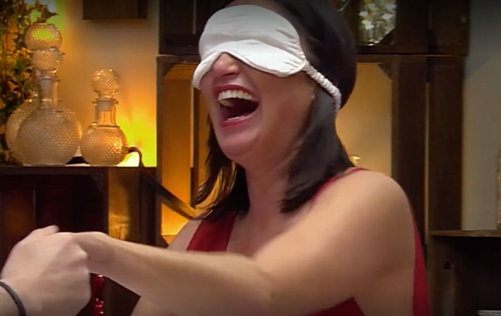 Durante la velada, Carmen entró en el juego. Entre ji ji y ja ja, y sin ver nada de nada, la pareja tonteó mútuamente, jugueteó con la comida y soltó frases como "estoy tocando lo que hay en el centro de la mesa... a ver dónde está la tercera pierna".