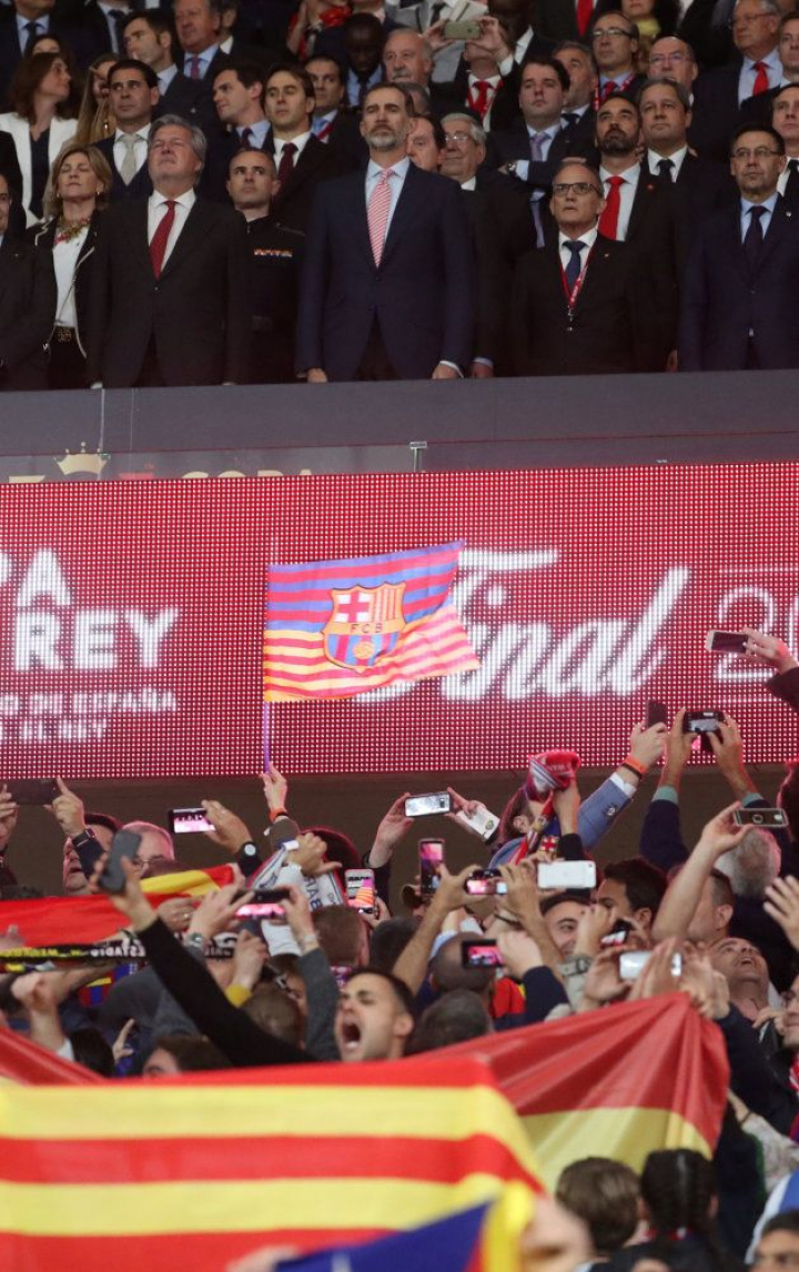 Volvió a pasar. Como es costumbre desde que juega el Barça la final de la Copa del Rey, el himno de España ha sido pitado antes del inicio del partido con la aparición del rey Felipe VI en el palco.