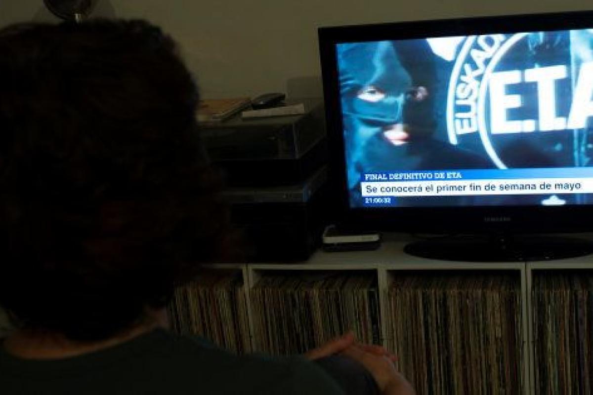 Una mujer ve en la tele un programa sobre el fin de ETA.Vincent West / Reuters