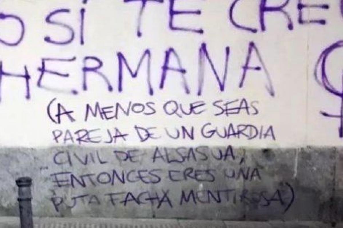 Varios medios de comunicación, entre ellos El Español, han dado carta de veracidad a un montaje en el que se ve una pintada con el lema "Yo sí te creo hermana", escrita tras el juicio a los miembros de La Manada, a la que responde otra que añade: "(A menos que seas pareja de un Guardia Civil de Alsasua, entonces eres una puta facha mentirosa)".