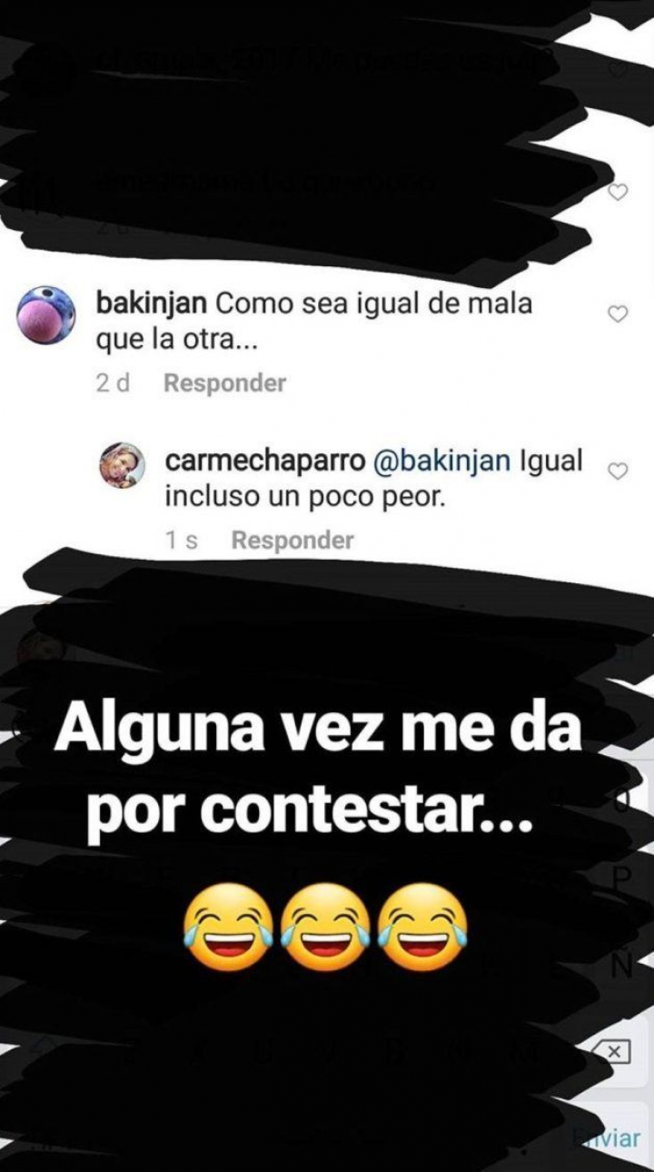 La periodista ha recogido en su Stories lo ocurrido y ha apostillado: "Alguna vez me da por contestar".