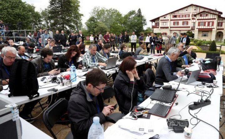 Los periodistas locales reconocen varios rostros de estos voluntarios, relacionados con el entorno de la izquierda abertzale. Muchos de los reporteros que han acudido hoy a Arnaga -hay 320 periodistas de 110 medios, varios internacionales- son veteranos curtidos en los años de plomo. Esta mañana mataban el tiempo fumando y recordando algunas batallitas, como cuando eran citados en bares para recibir amenazas directas si seguían informando.