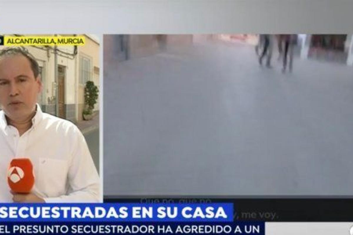 El hombre que ha sido acusado de retener durante un año a su mujer y a su hija en su domicilio de Alcantarilla (Murcia) ha agredido al reportero de Espejo Público Fernando Rozo.