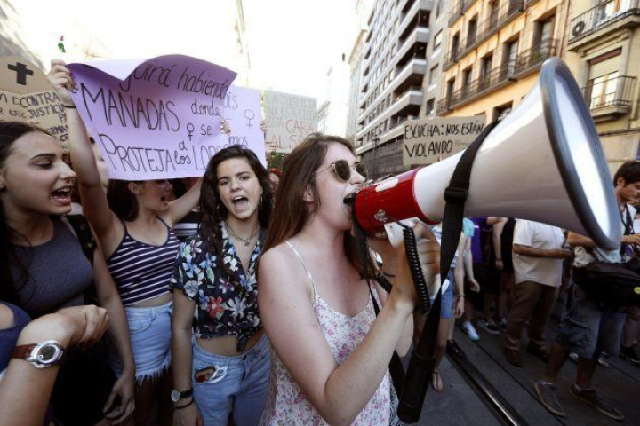 Las mujeres han vuelto a echarse a la calle para alzar la voz en contra de la sentencia de La Manada. Este jueves, la Audiencia Provincial de Navarra decidía poner en libertad a los cinco jóvenes condenados a nueve años por abuso sexual a una joven en los Sanfermines de 2016, justo antes de que cumplieran dos años en prisión provisional.