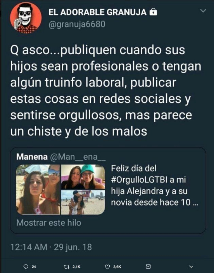 Aunque el tuitero faltón ya ha borrado su cuenta y con ella, el mensaje, los usuarios de la red han capturado sus palabras. "Qué asco... Publiquen cosas cuando sus hijos sean profesionales o tengan algún triunfo laboral", decía uno de los mensajes.