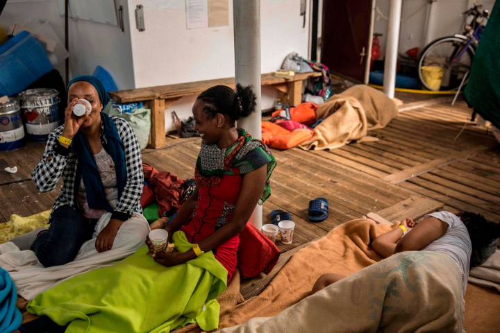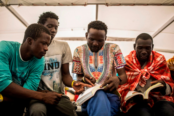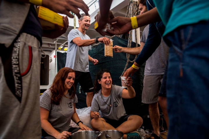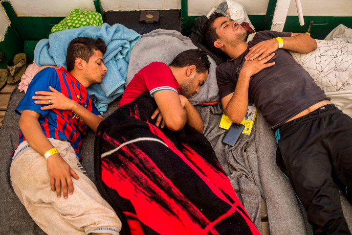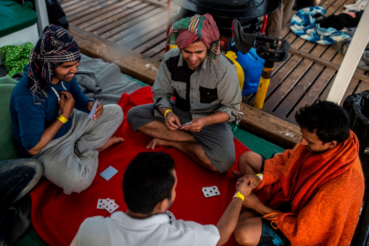 De las 60 personas, 50 eran hombres, 5 mujeres y 5 niños. Durante el viaje, Proactiva Open Arms les facilitó libros, mantas, comida y bebida. Los migrantes tuvieron tiempo para leer, escribir, pensar, divertirse y reponerse un poco de sus penalidades. Estas son algunas de las escenas que se han vivido a bordo.