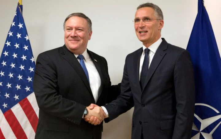 Mike Pompeo, secretario de Estado de EEUU, y el secretario general de la OTAN, Jens Stoltenberg, el pasado abril en su primer encuentro.POOL New / Reuters