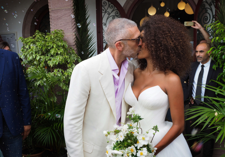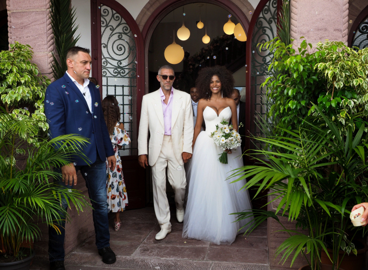 Cassel (51 años) y Kunakey (21) se casaron por lo civil. La novia lució un diseño de Vera Wang y un ramo de flores blancas, mientras que él también vistió de color claro y prescindió de la corbata, con el cuello de la camiseta abierto y con gafas de sol.