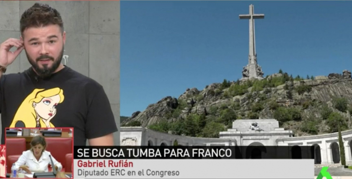 El diputado de ERC Gabriel Rufián ha dejado estupefacta a la periodista de laSexta María Llapart en pleno directo. El motivo: el objeto al que dedicaría Rufián El Valle de los Caídos tras la exhumación de los restos del dictador Francisco Franco del mausoleo.