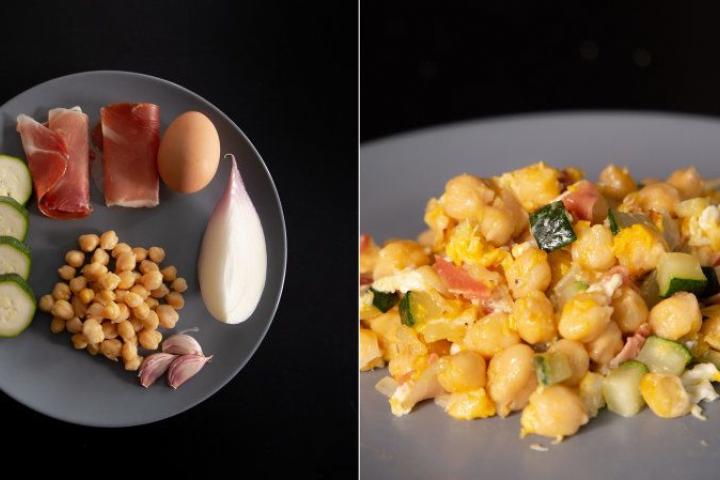 Recetas fáciles: revuelto de garbanzos con calabacín y jamón