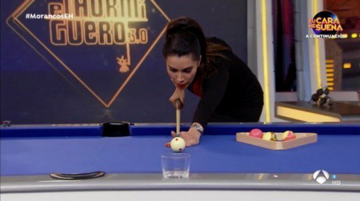 Ya lo avisó Pilar Rubio al comenzar su sección de retos en El Hormiguero (Antena 3) este lunes: si tiene una mesa de billar delante se viene arriba. Su desafío semanal consistía en hacer "distintos trucos", pero la colaboradora decidió complicar las cosas y apostar con Pablo Motos.