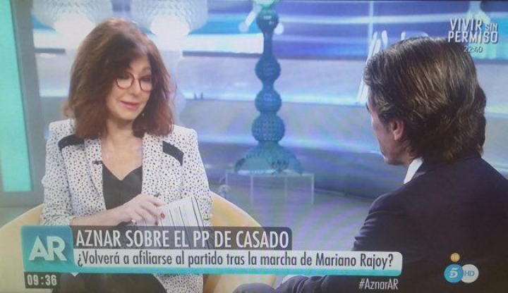 El expresidente del Gobierno José María Aznar dice que no está de vuelta. Pero su libro El futuro es hoy, que presenta este martes, le está llevando de tournée a todo aquel sitio donde le quieran escuchar. Su última parada ha sido El Programa de AR —de Telecinco—, donde ha afirmado que no le interesa la "política activa", pero donde ha dejado claras evidencias de que la política y su conflicto le pone (y mucho).