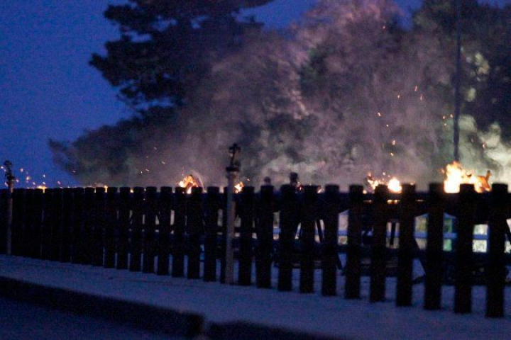 Un pasillo de antorchas abrió el paso a los invitados de la celebración, que entraron al recinto de Casas Novas por la parte trasera. Por la parte principal también había una línea fuego para recibir los novios. En el interior, numerosas pantallas LED transmitieron las actuaciones en directo.