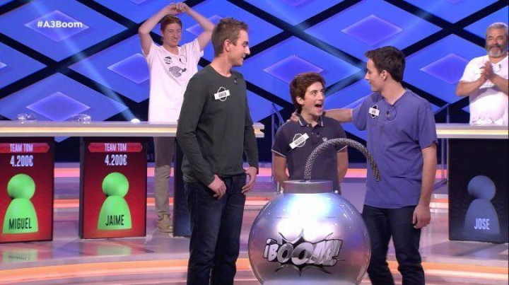 Ramón, Miguel, Jaime y Gonzalo, los Team Tom, plantaron cara duramente este jueves a Los Lobos en Boom, el concurso de Antena 3 conducido por Juanra Bonet. Estos cuatro estudiantes valencianos fueron saliendo airosos de las pruebas hasta que llegaron a la bomba clasificatoria, la que decide qué equipo va a la ronda final.