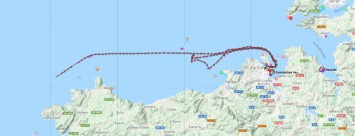 Según MarineTraffic, portal especializado en flotas marítimas, esta fue la última posición del pesquero tras partir desde el puerto de A Coruña: