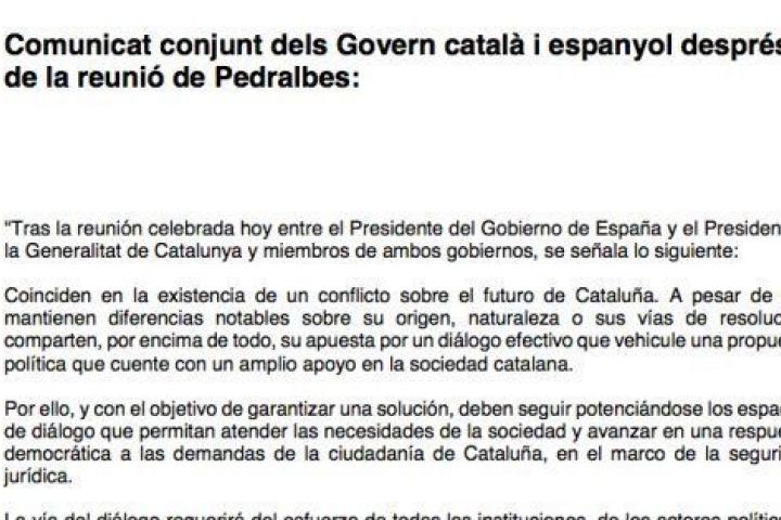 Este es el comunicado pactado por Moncloa y la Generalitat