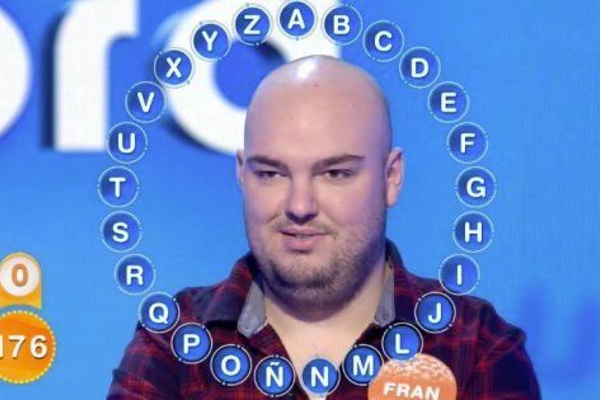 En la fotografía aparece Fran rodeado por todas las letras del rosco en verde salvo la Z, en una de las varias ocasiones que ha rozado el llevarse el bote del programa.