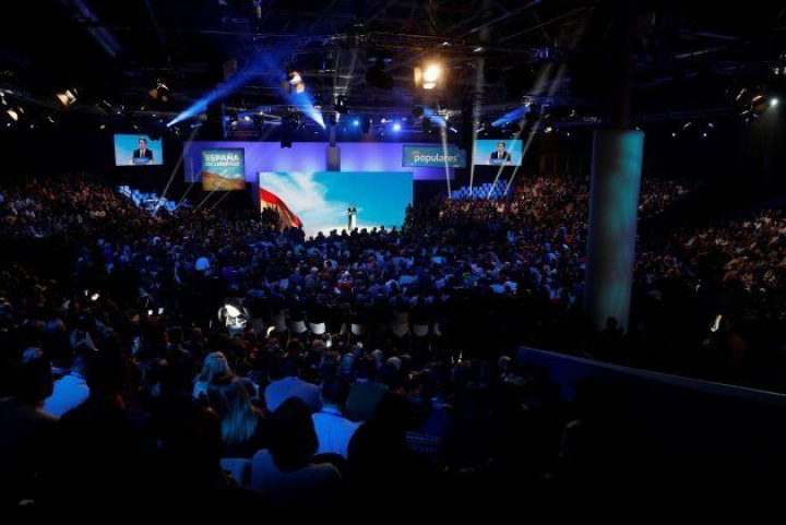 El PP ya lleva dos días de cónclave en el madrileño recinto ferial de Madrid de Ifema. Un ir y venir sobre la intensa moqueta azul a juego con el partido. Por ella pasarán unas siete mil personas hasta el domingo. Todo con el objetivo de Pablo Casado de rearmar ideológicamente a su partido.