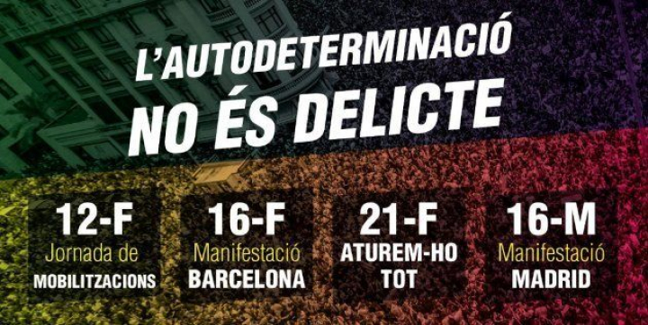 En una rueda de prensa conjunta celebrada en el Palau Robert de Barcelona, han anunciado también otras manifestaciones: el martes 12 de febrero por la tarde en las cuatro capitales de provincia catalanas y Tortosa (Tarragona), y el sábado 16 de febrero en la Gran Via de Barcelona.