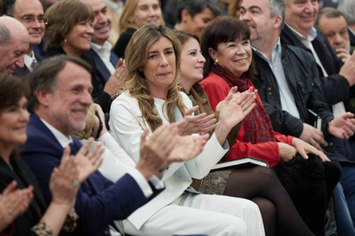 De repente, bajan las luces. ¿El fantasma de las fake news? No, un pequeño error. Vuelven las lámparas a alumbrar. En primera fila lo sigue todo atentamente su esposa, Begoña Gómez, de blanco impoluto. Y también están algunas de sus personas de confianza: José Luis Ábalos, Carmen Calvo, María Jesús Montero, Adriana Lastra, Fernando Grande-Marlaska, Santos Cerdán, Susana Sumelzo, Margaria Robles... Los que le acompañaron en la caída y resurgir. Una historia que ha comparado con la vivida por muchos españoles durante la crisis.