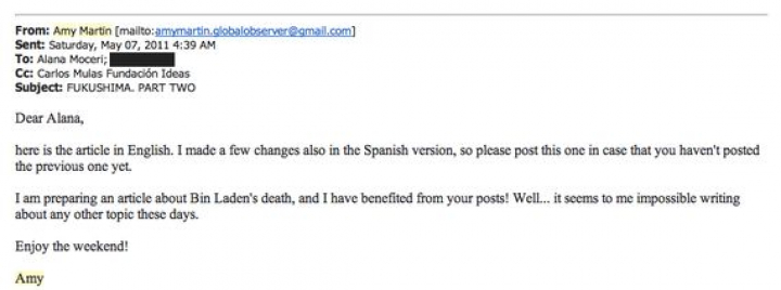 No soy una persona capaz de dejar mi curiosidad insatisfecha, pero tras unas búsquedas infructuosas lo tuve que dejar así, sin resolución. Y ella seguía siendo un enigma mientras intercambiábamos emails. Claro, no le iba a preguntar "¿Quién eres?", porque era supuestamente lo bastante importante como para merecer un espacio destacado en nuestra web. Había frases y palabras no exactamente adecuadas en su inglés y tuve que corregir sus artículos (algo que me parecía curioso y que comenté a mi jefe) pero, tampoco tan curioso, porque en EEUU hay mucha gente que ha nacido en otro país y tiene otro idioma nativo. En fin, desarrollé una relación cordial con ella por email y y luego otra cosa llegó a ocupar mi atención.