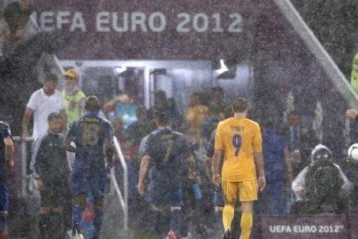 El caso es que en cuanto se desencadenó el diluvio sobre Donetsk, una legión de avispados ególatras se apresuró a mostrar su entusiasmo bajo la tormenta, sabedores de que los realizadores de la televisión estarían encantados con tal actitud. Pudimos ver congas, brotes de paroxismo patriótico, chapoteos eufóricos y tremendas panzas desnudas. Y entre tanto, Benzema, Shevchenko, Ribéry, Pyatov o Menez esperaban castigados en las tripas del estadio.