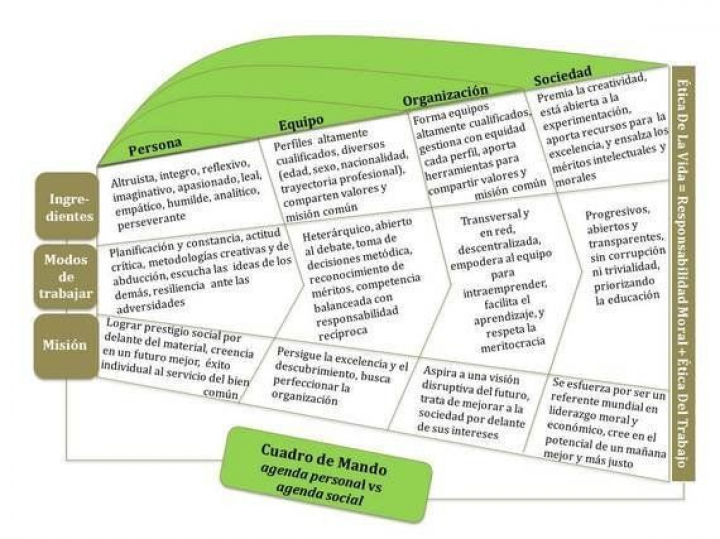 Marco operativo para transformar la ética del trabajo en una ética de la vida. Gráfico: AGP.